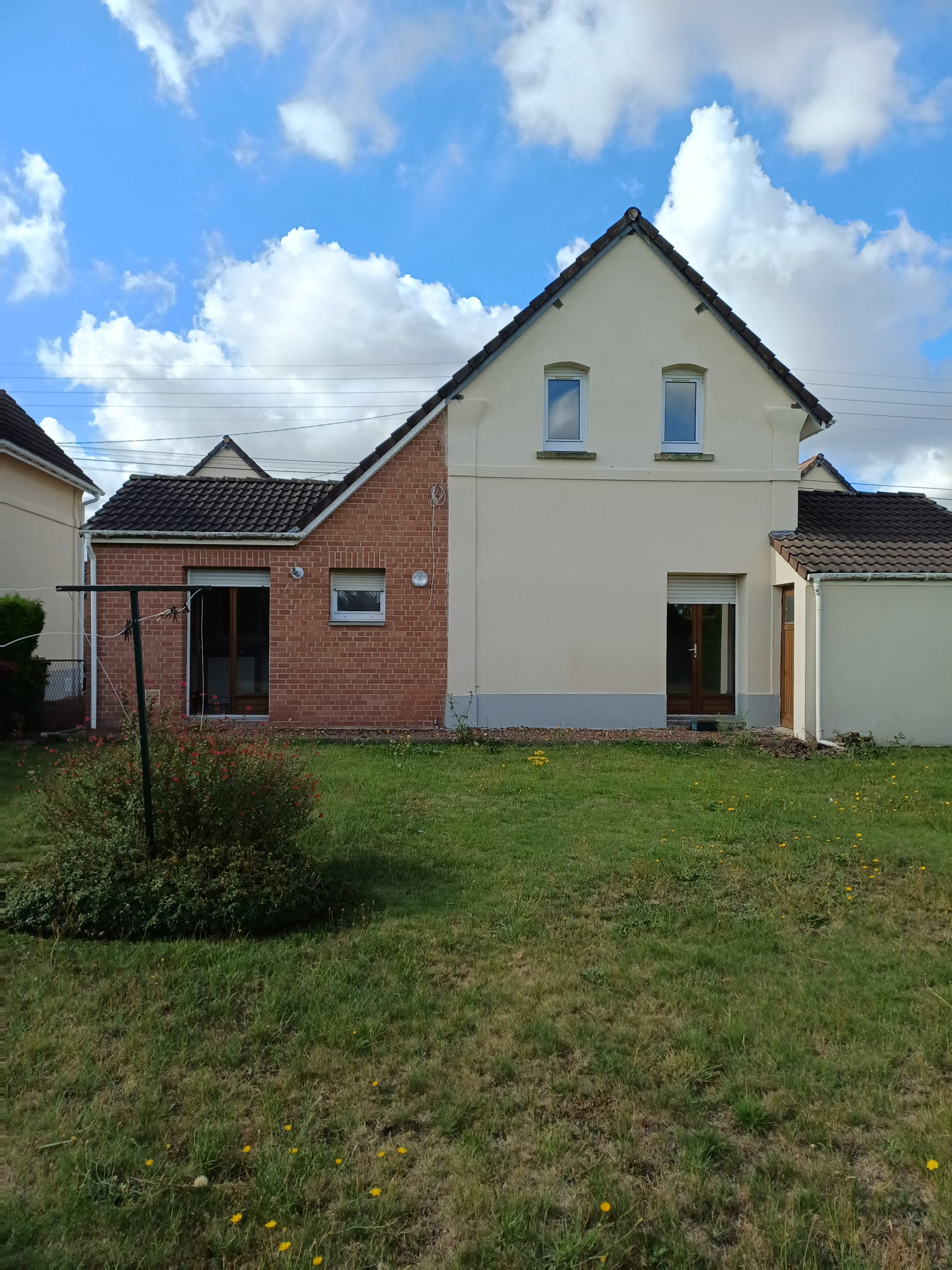 Maison étagée 1914 + ou – 70 m² habitables, bâtie sur 377 m² de terrain clos.